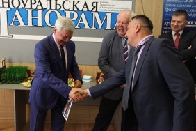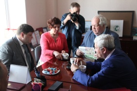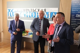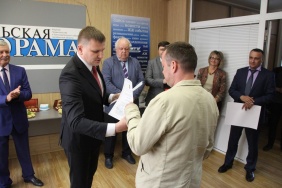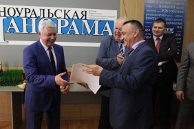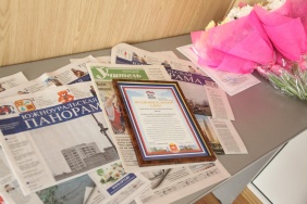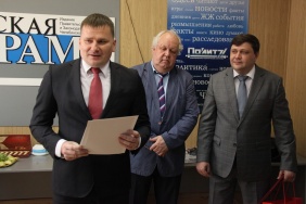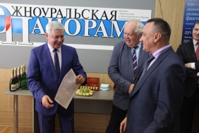 Владимир Мякуш и Марина Поддубная поздравили коллектив газеты «Южноуральская панорама» с 20-летием со дня выхода в печать первого номера издания