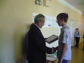 30 мая, на последнем уроке в этом учебном году, в канун Международного Дня защиты детей, депутат Законодательного Собрания Александр Вольхин встретился с учениками, поздравил их с окончанием учебного года и вручил победителям хрестоматию "Взгляд из прошлого в настоящее: история парламентаризма в Челябинской области в XX - начале XXI вв.", памятные подарки. В школу он передал плакаты "20 лет российской демократии".