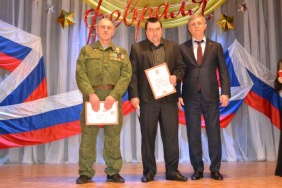 Затем Валерий Васильевич поздравил всех с наступающим праздником и вручил благодарственные письма активистам ветеранского движения Красногорского городского поселения: Евгению Воробьеву, первому руководителю военно-патриотического клуба «Русич» и нынешнему руководителю клуба - Александру Кондратьеву, за большой вклад в патриотическое воспитание подрастающего поколения.