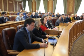 Сегодня в областном парламенте прошла встреча Александра Журавлева и Марины Поддубной с представителями палаты молодых законодателей при Совете Федерации Федерального Собрания РФ.