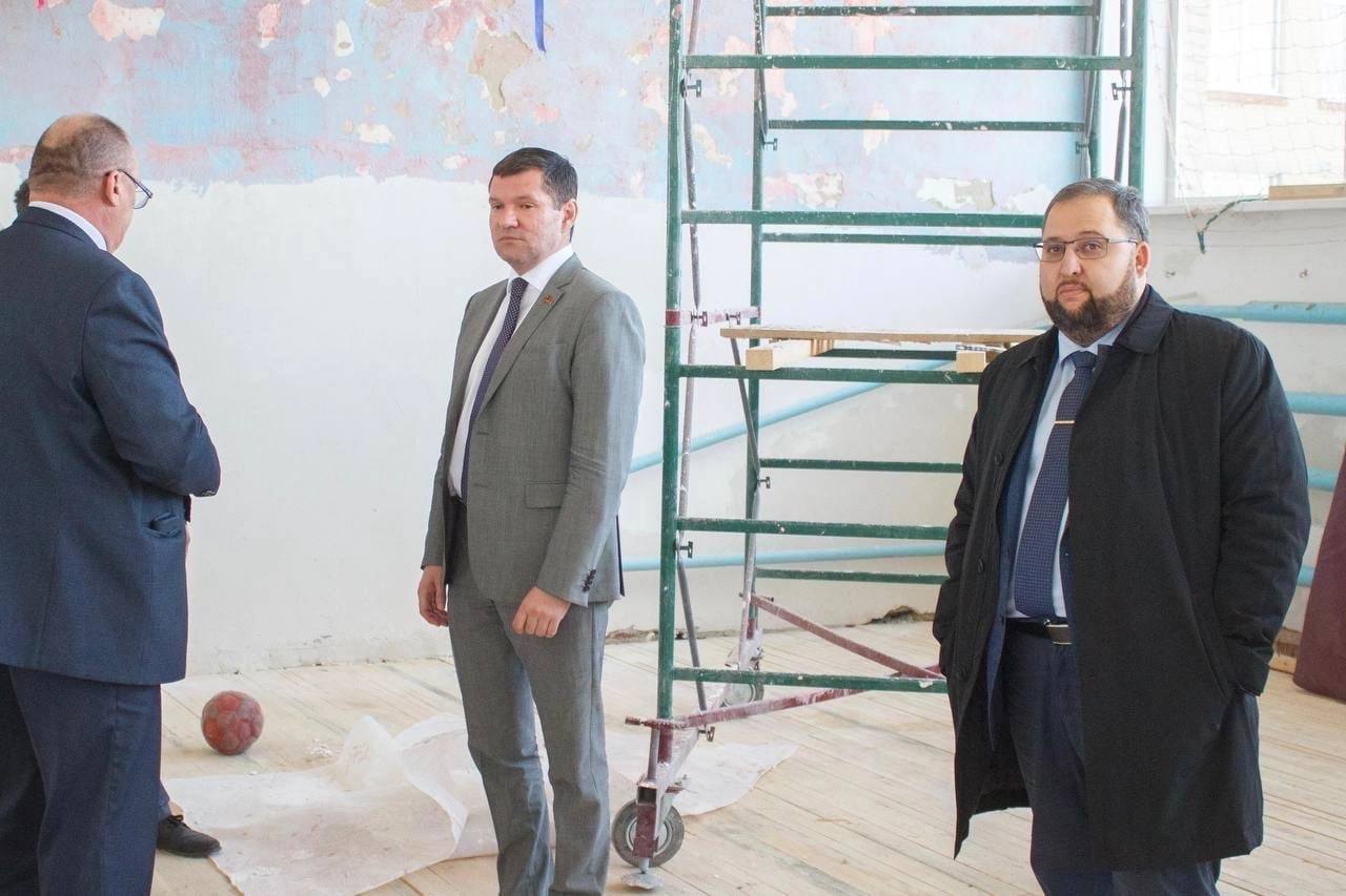 Депутаты Законодательного Собрания Лена Колесников и Александр Решетников контролирую ход работ. Особо депутаты отмечают новые образовательные возможности, которые появятся у школы после завершения ремонта: здесь откроются современные мастерские для уроков технологии и спортивный клуб .