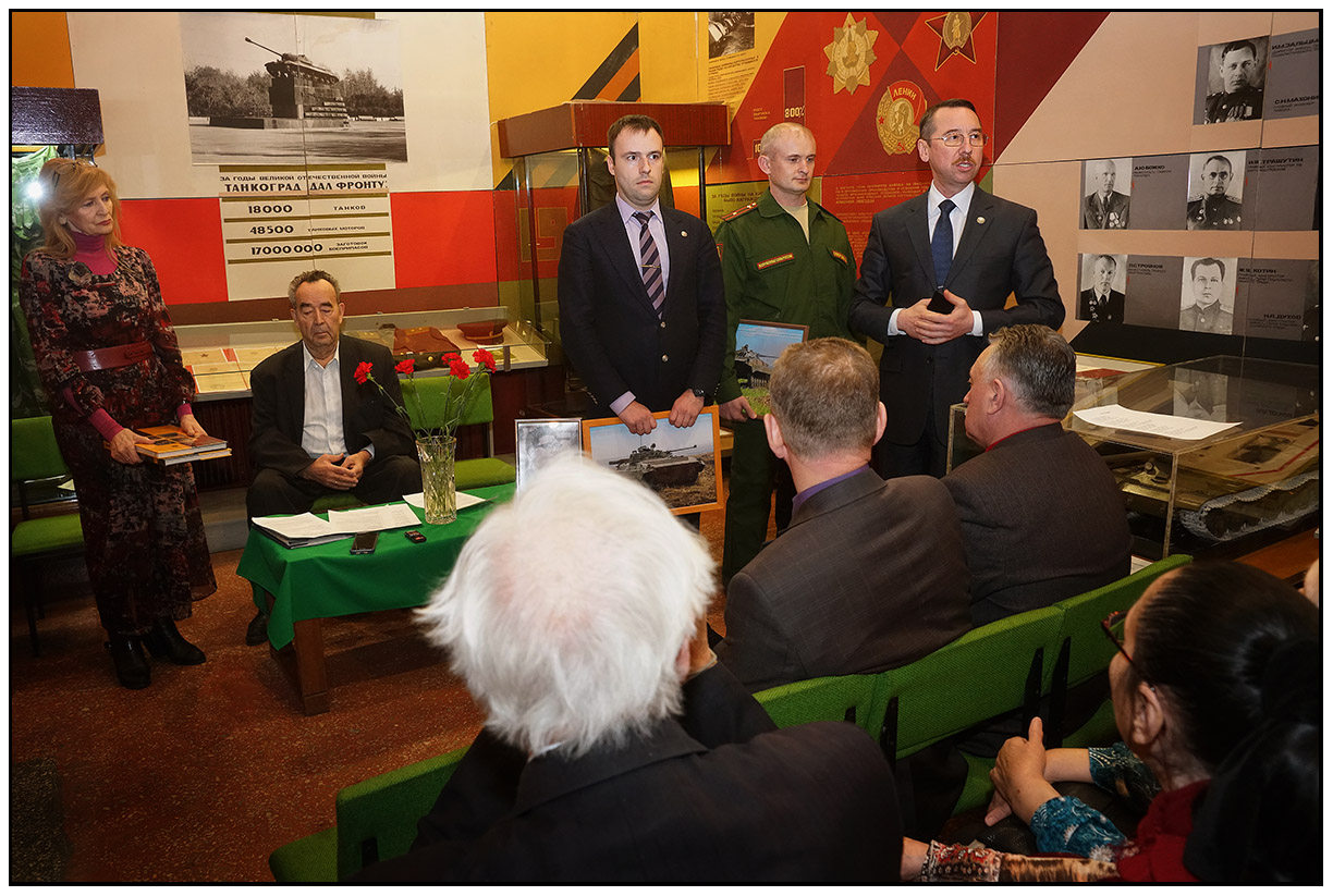 Со словами благодарности к творцам могучей техники обратилась делегация во главе с председателем Совета шефов воинских частей, сопредседателем Экспертного совета при Законодательном Собрании по патриотическому воспитанию и военно-шефской деятельности Игорем Михайловым, который предложил развивать сотрудничество уральских танкистов с легендарным заводом. Представитель гвардейской дважды Краснознаменной Витебско-Новгородской танковой дивизии гвардии майор Анатолий Скворцов и руководитель группы компаний АРКОМ Михаил Телешев рассказали о современной практике применения бронетехники в обучении личного состава и выполнении боевых задач, передали в музей редкие фотоработы с соревнований Центрального военного округа «Суворовский натиск». Ветеранов и руководство завода пригласили побывать в Чебаркульском гарнизоне и увидеть нынешние условия службы и быта уральских танкистов.