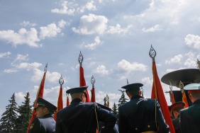 В День России у мемориала «Вечный огонь» состоялась торжественная церемония вручения копий боевых знамен воинских частей и соединений.