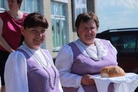 Сотрудницы Дома культуры встретили Владимира Мякуша, депутатов Владимира Горнова и Марину Поддубную, согласно русскому обычаю, хлебом-солью и провели экскурсию по учреждению.