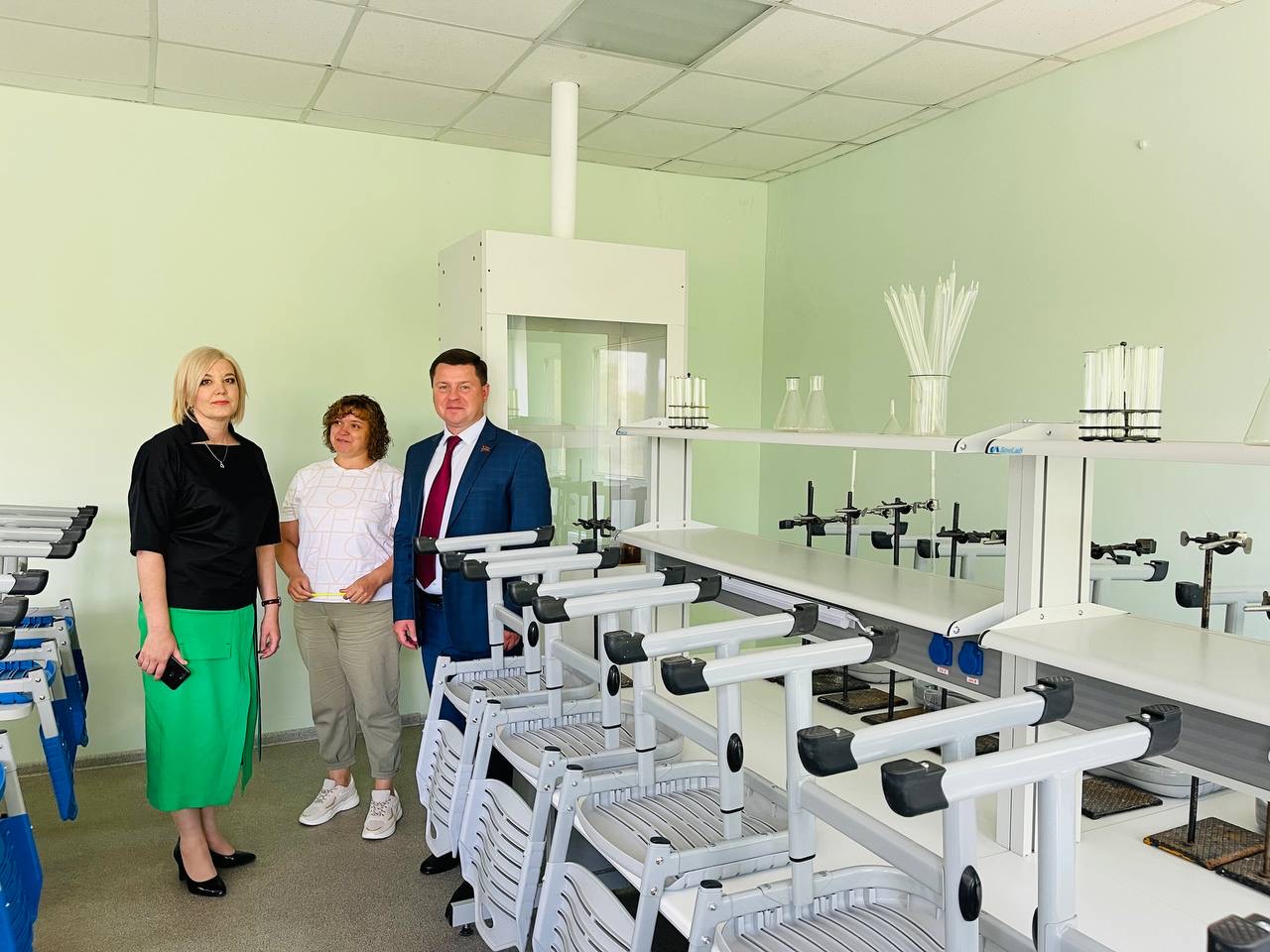 «Учащиеся профильных классов теперь имеют возможность работать в современных лабораториях, имеющих необходимое оснащение. Для проведения опытов по химии оборудованы специальные рабочие места. Для изучения информатики и основ программирования закуплены новые современные компьютеры, имеющие большие технические возможности. Вместо привычных школьных досок – интерактивные сенсорные панели и маркерные доски», – прокомментировал Вадим Ромасенко.