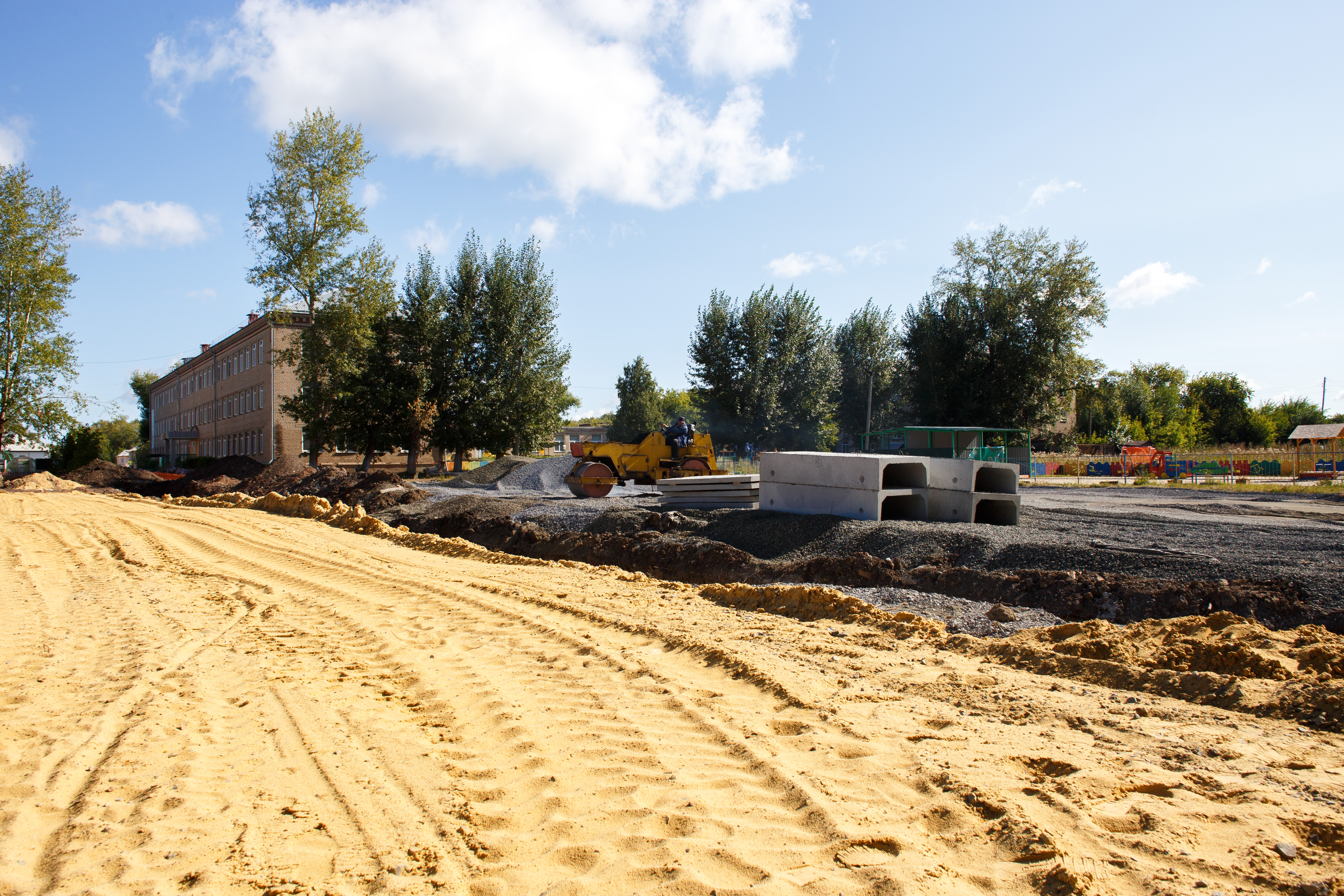 «Есть момент, который задержал выполнение работ – теплотрасса, которая по всем схемам должна была проходить вне спортивной площадки, но, как оказалось, проходит прямо через нее, – пояснил Олег Гербер. – Естественно, для того, чтобы не делать двойную работу и не тратить лишние бюджетные деньги, школа была вынуждена осуществить работы на этой аварийной теплотрассе, то есть вскрыть, заменить аварийный участок, чтобы не рушить возводимую сейчас инфраструктуру».