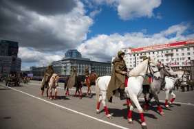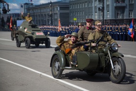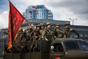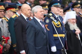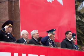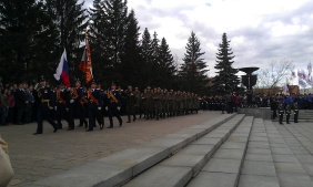 Парад Победы начался в полдень на Площади Революции. На главное событие в череде праздничных мероприятий в честь Дня Победы пришли посмотреть тысячи южноуральцев. Вместе с Владимиром Мякушем подразделения Челябинского военного гарнизона с трибуны приветствовал губернатор Михаил Юревич, представители власти, высшего военного руководства, духовенства, ветераны Великой Отечественной войны.