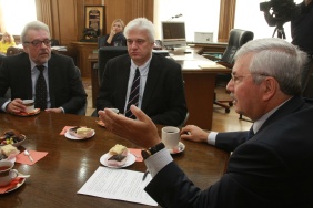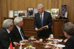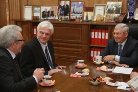 Владимир Мякуш встретился с профессором Факультета медиа Университета прикладных наук г. Киль (ФРГ), бывшим спикером парламента земли Шлезвиг-Гольштейн Кристианом Хауком и преподавателем этого вуза Петером Штоббе.